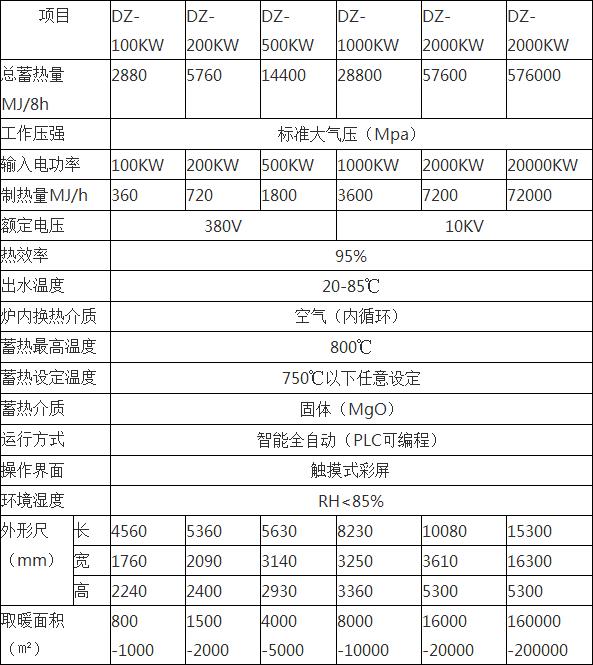 工業用電加熱式固體蓄熱設備技術參數: